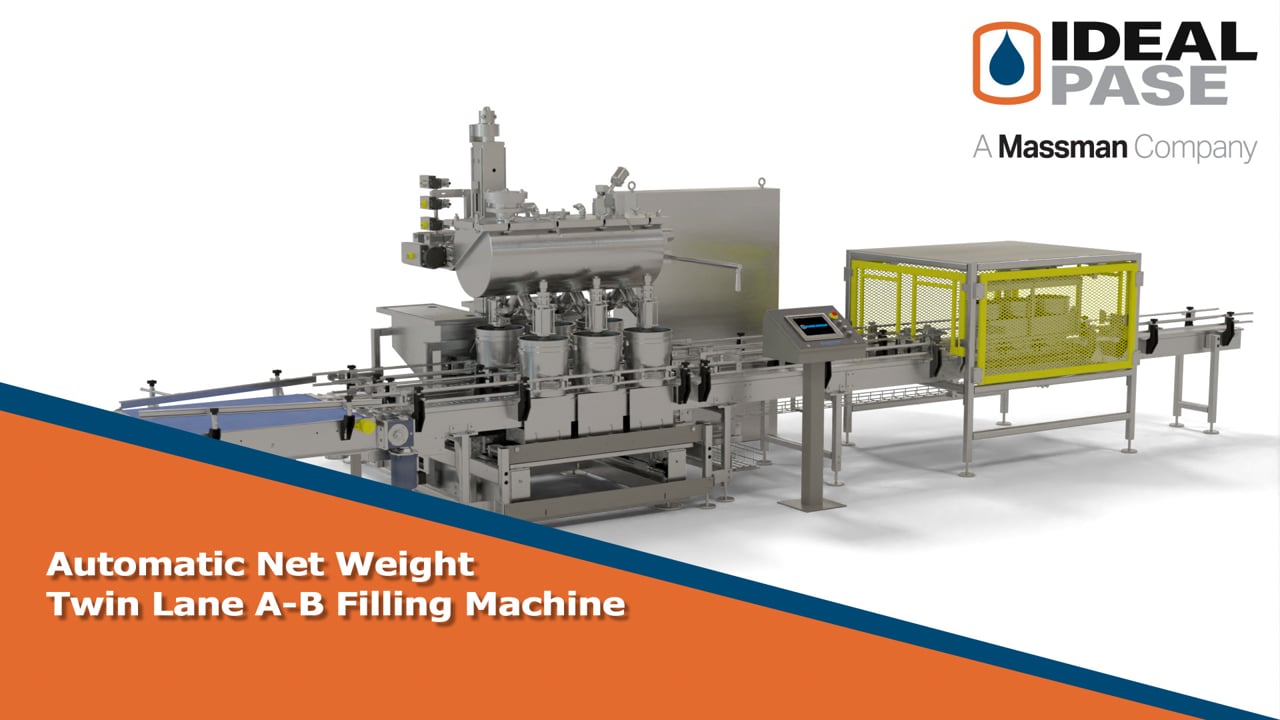 • Automatic Net Weight Liquid Filling Machine Featuring Ideal Pase’s 6 Head Pressure Over Product (POP) Fill Tank delivering fast container filling for a variety of liquid products.