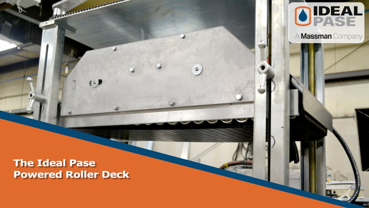Sometimes the simple solution isn’t always the one that works the best, take for instance, roller closers. Ideal Pase manufactures many kinds of closers, including roller closers. Our roller closer package is very popular with many of our machines. Most of the time, a simple roller closer will get the job done, but sometimes, you have some tricky lids and containers that just give you trouble. Ideal Pase’s Powered Roller Deck will give you the closure you need.
